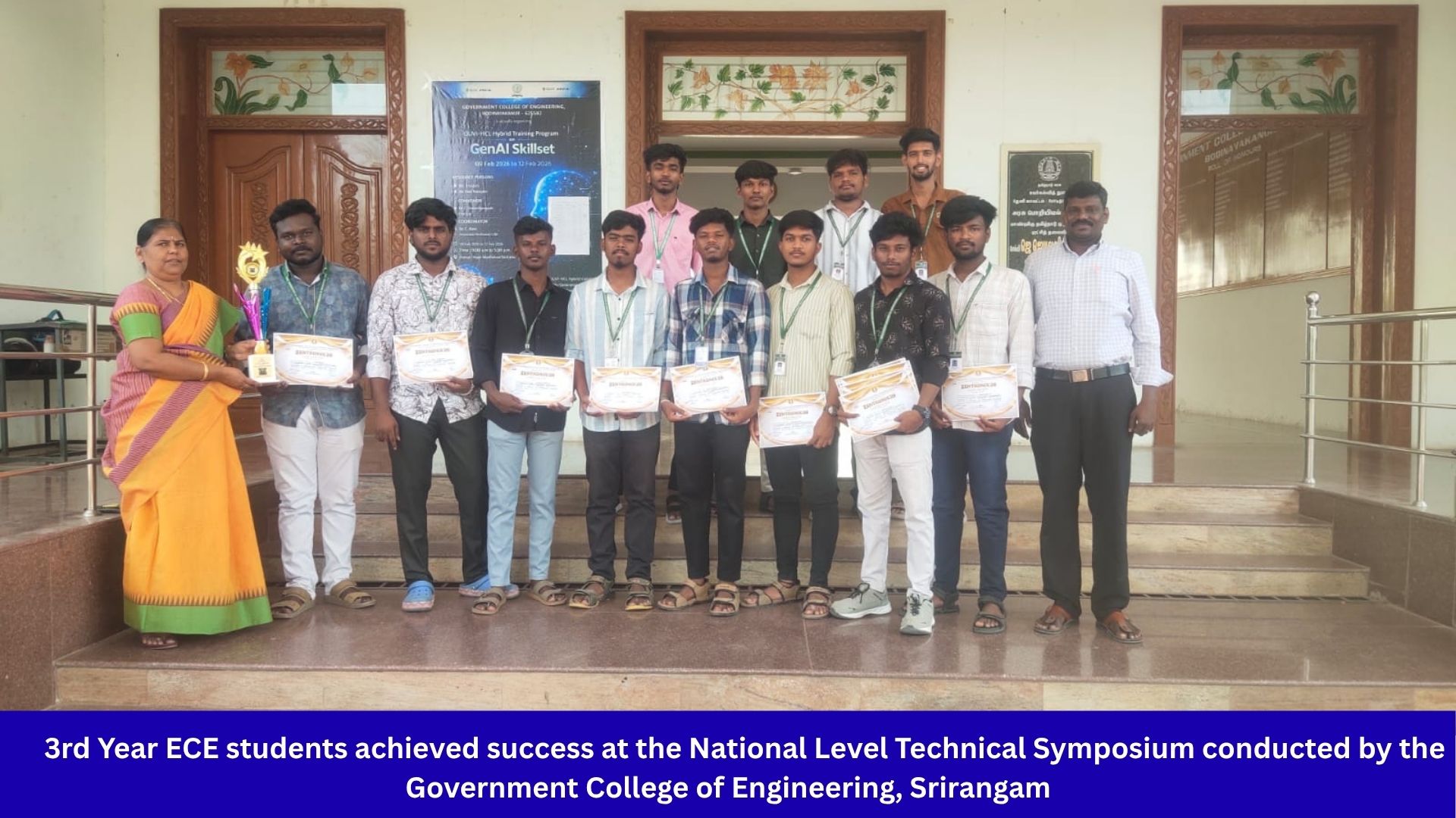 Our 3rd Year ECE students have achieved remarkable success at the National Level Technical Symposium, conducted by Government College of Engineering, Srirangam.